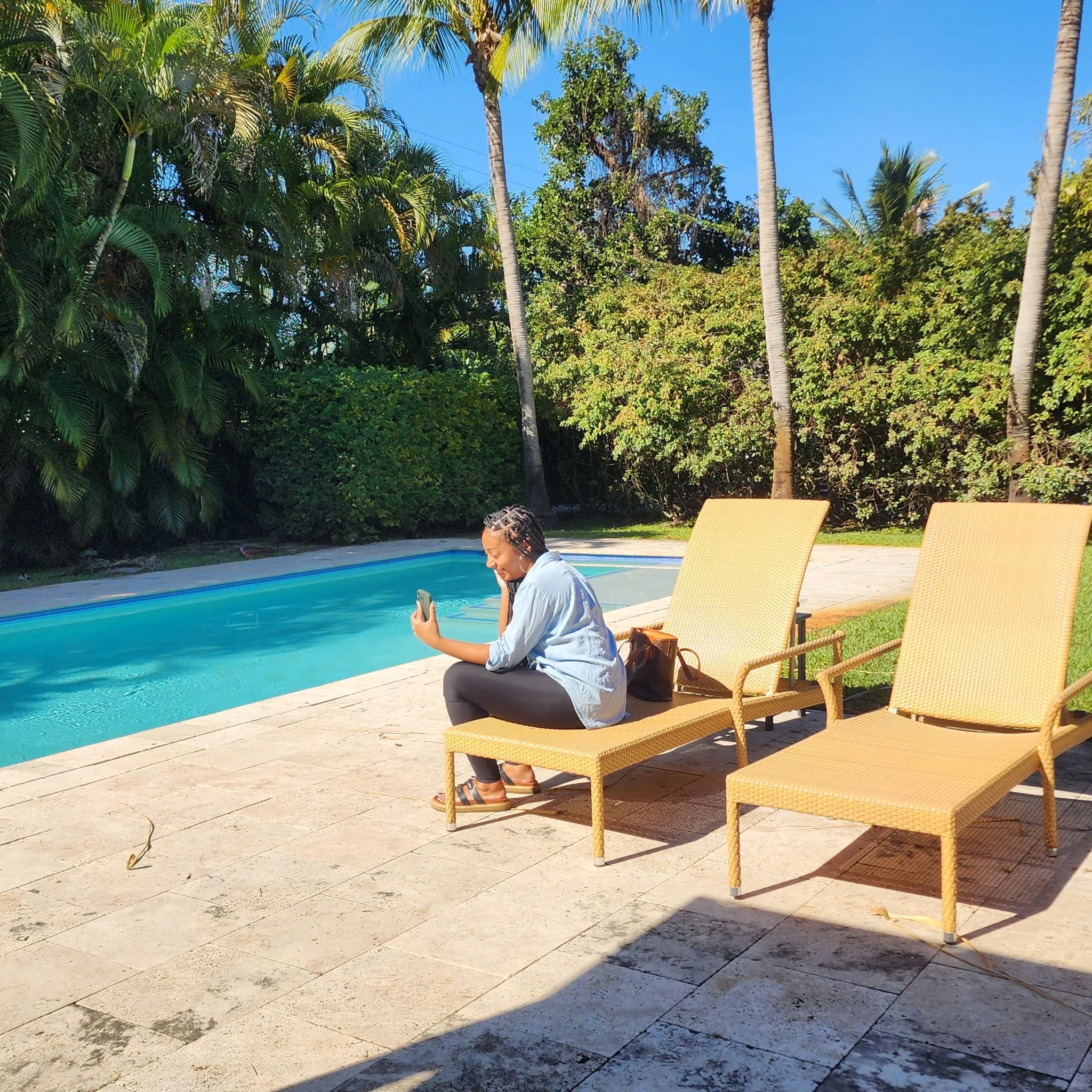 The next day some of the girls went to the market and picked somethings up for the house. During that time Alex and I sat outside and got some sunshine in. It was January and the weather in certain parts of Florida is a little chilly and windy. The house came with a private pool and we had yet to be able to enjoy it due to the cold.